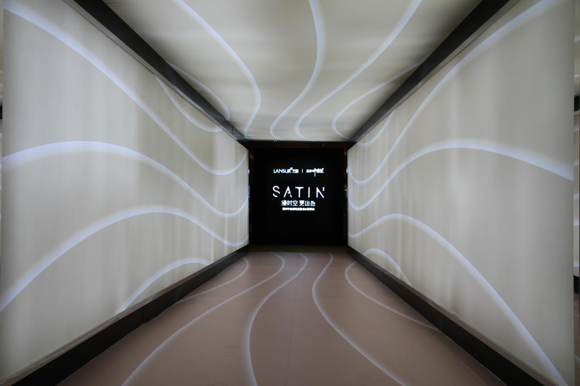 穿過隧道,漫時(shí)空展館映入眼簾。展館背景以膚色絨布為主,頂部漂浮著大小不一的“星球”,搭配柔和的燈光,“時(shí)空隧道”帶來的快節(jié)奏流失感迅速消逝,心一下子靜了下來,這也是該系列底妝想要帶給消費(fèi)者的感受。