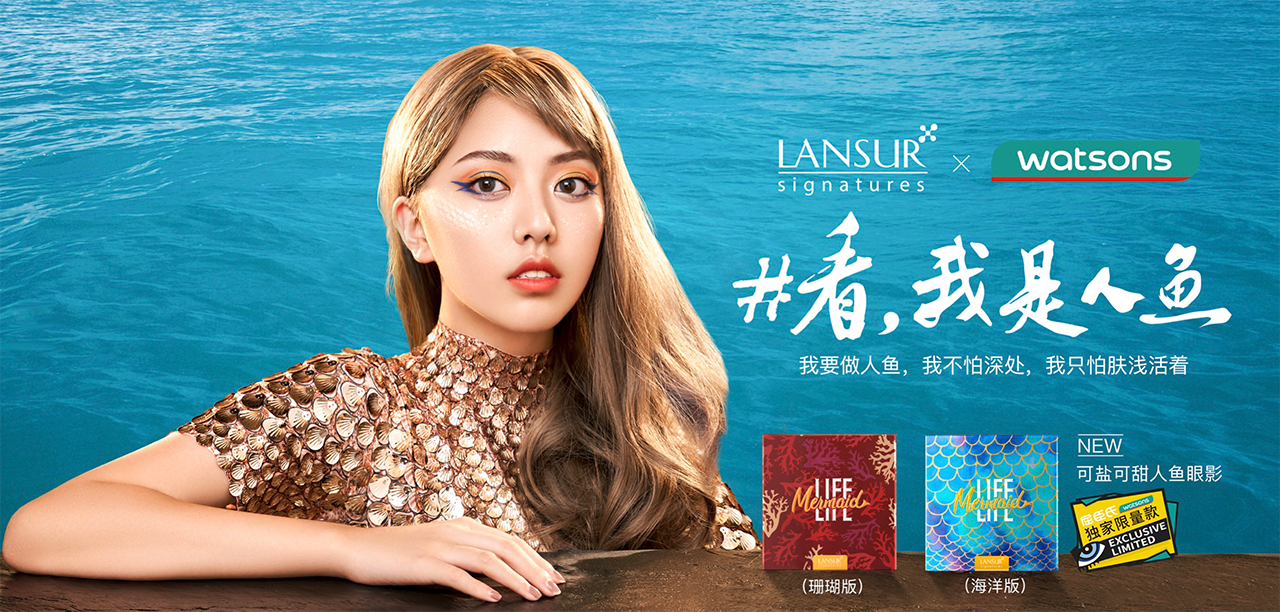近日,劉人語(yǔ)攜手LANSUR蘭瑟、美妝零售大咖屈臣氏跨界展開(kāi)三方合作,推出彩妝新品“可鹽可甜人魚(yú)眼影盤(pán)”, 于12月1日在天貓屈臣氏首售,14日在屈臣氏線下門(mén)店正式發(fā)售!12月15號(hào),“人魚(yú)妹妹”劉人語(yǔ)帶著這款人魚(yú)主題眼影盤(pán),空降在“看 我是人魚(yú)”2018成都“MERMAID”快閃店,與粉絲們零距離互動(dòng),一起探尋美人魚(yú)的傳說(shuō)。