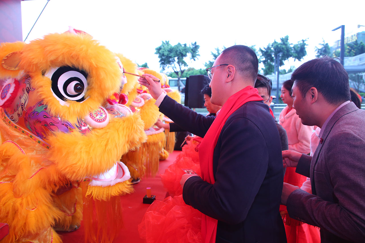 在這個喜慶隆重的日子里,肯定少不了醒獅的助興!在舞獅表演之前,首先進行的是點睛儀式。萬邦集團的領導以及嘉賓,共同為醒獅點睛,寓意萬邦集團生意興隆,虎虎生威,勇猛猛進。