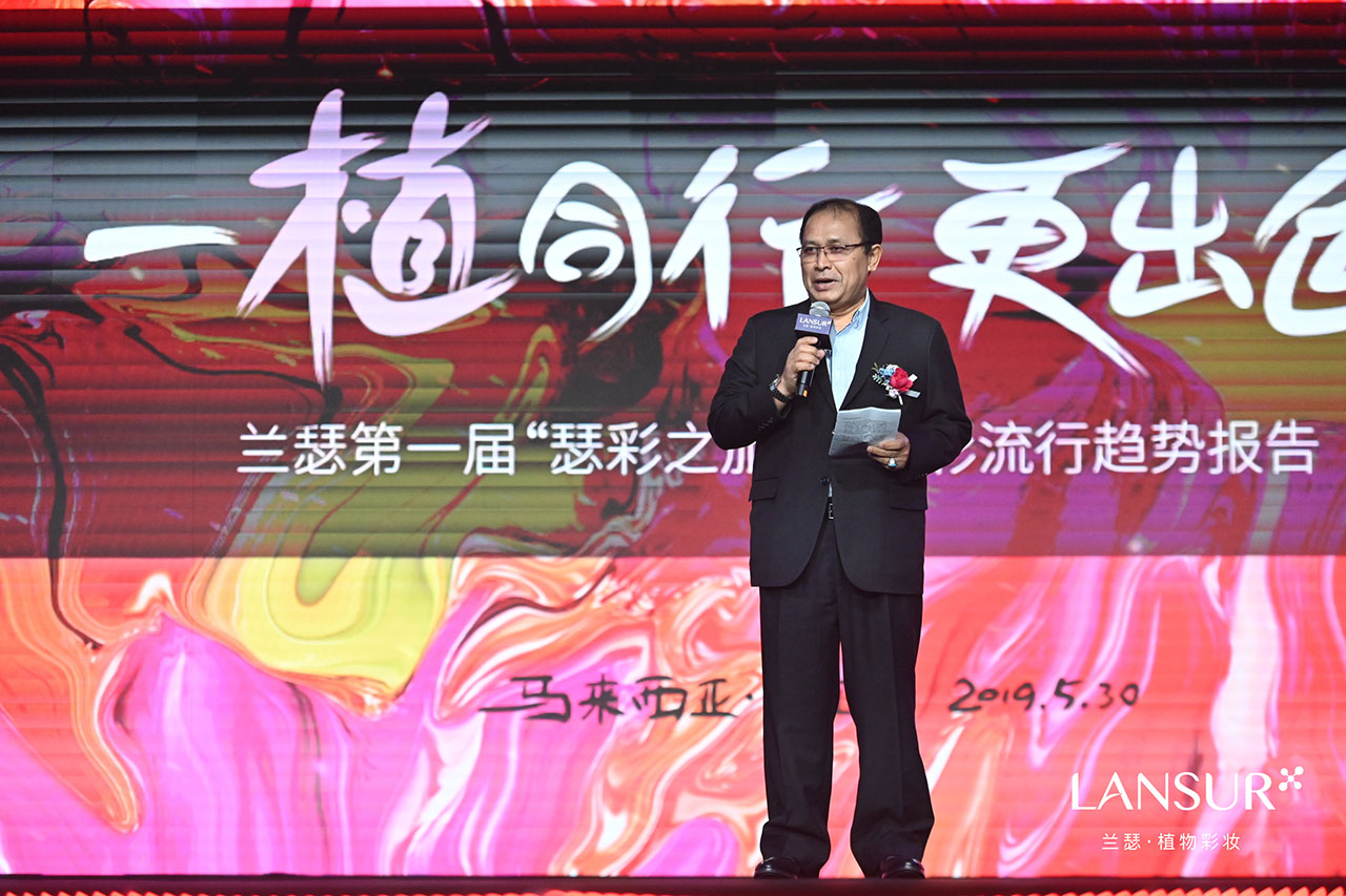 本次蘭瑟品牌盛宴分為四個篇章,分別是共贏彩妝大勢、共證瑟彩先鋒、共享色彩趨勢、共賞彩妝大秀,在拿督一番熱情洋溢的致辭之后,便進入盛典的第一篇章。
