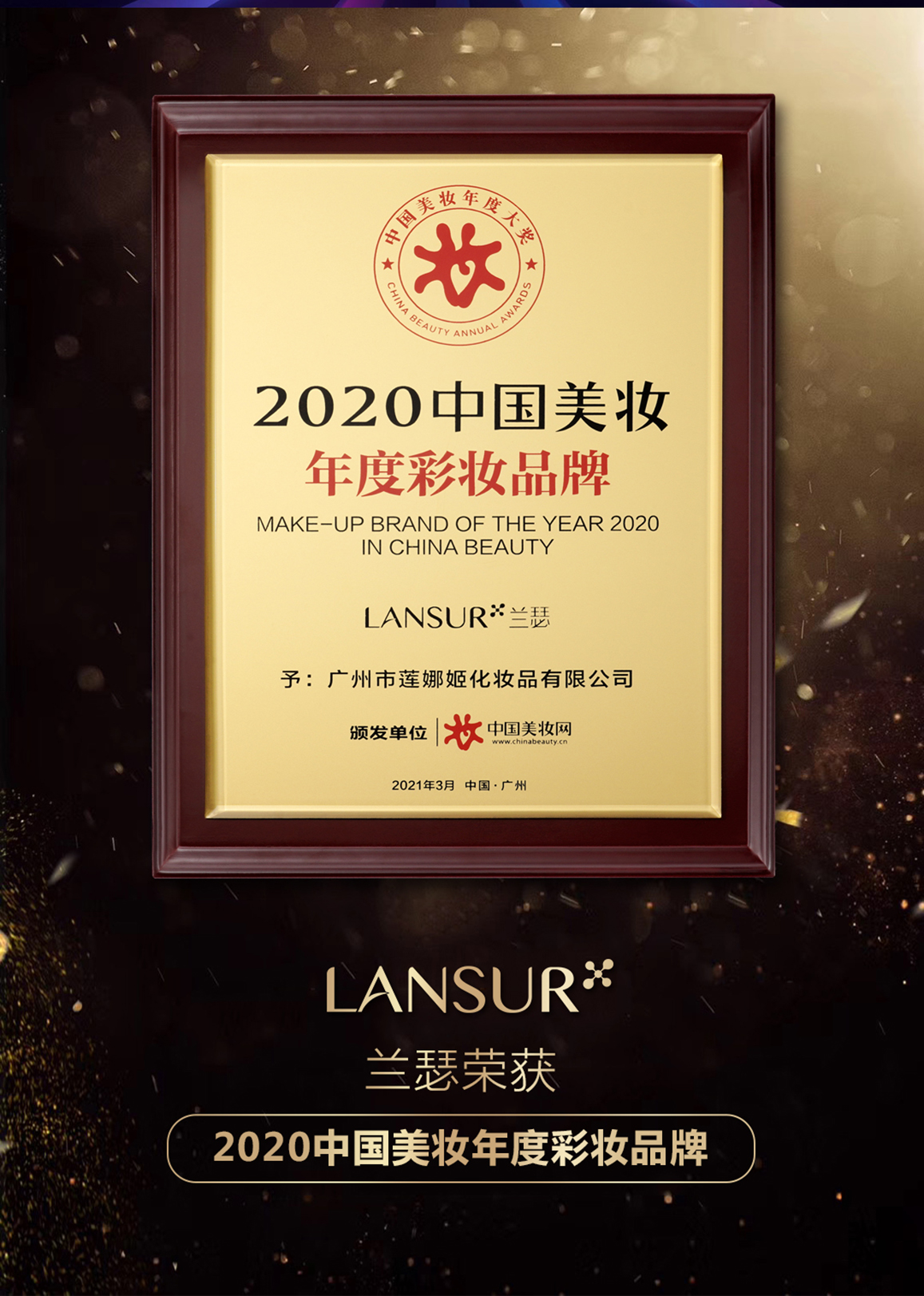 蘭瑟榮獲2020中國美妝年度彩妝品牌,品牌實力再獲專業(yè)肯定